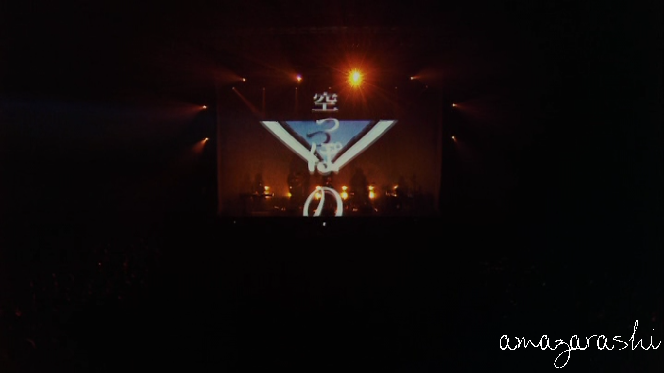 Le chanteur remercie immédiatement l’audience et laisse entendre ナガルナガル (nagaru nagaru). C’est sous des spots bleus, rouges et jaunes que s’installe ce titre enjoué. Il n’est cependant pas question de distinguer plus que des silhouettes sur scène. Makoto Hashiyada à la batterie est rejoint par le bassiste Takefumi Nakamura, Manami Toyokawa au piano ainsi que Yoshiaki Dewa à la guitare. Les membres baignent dans une lumière tamisée divine avant que Hiromu donne le coup d’envoi : 空っぽの空に潰される (karappo no sora ni tsubusareru). Un vaste ciel bleu apparaît et laisse les fans voyager dans un autre univers. Il s’agit là d’un des titres les plus emblématiques de la formation, une chanson à la fois rythmée et joyeuse.