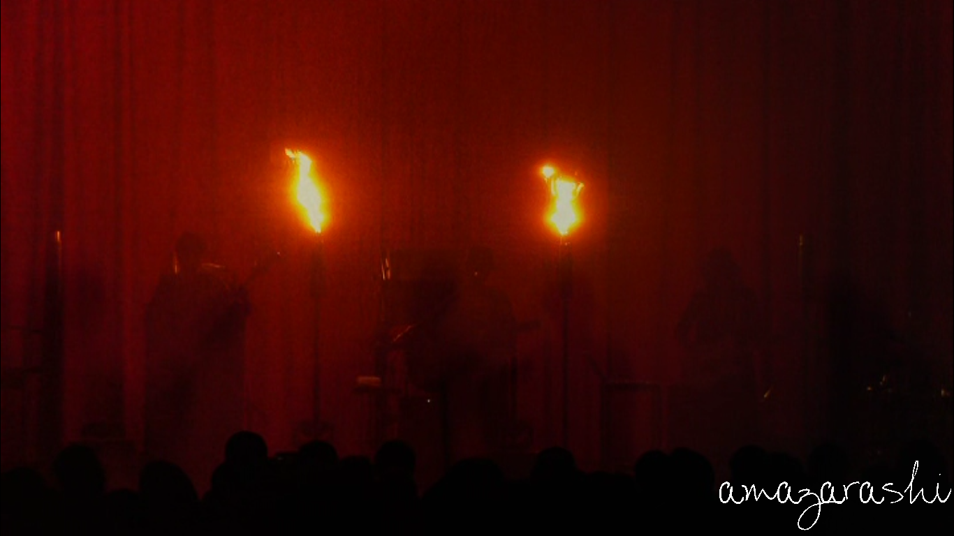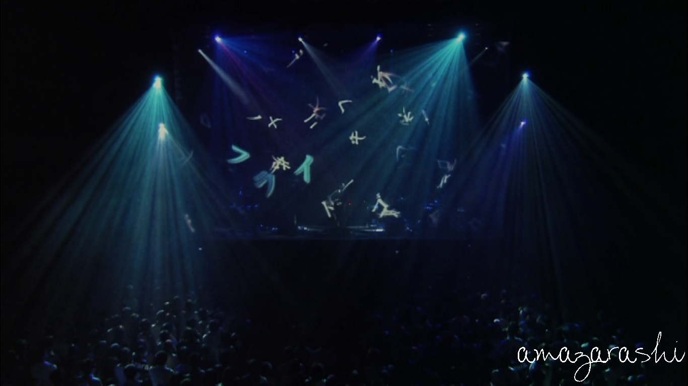 Une pluie de katakana s’abat sur la scène tandis que 少年少女 (shounen shoujo) débute. amazarashi semble jongler entre titres lumineux et titres sombres. Le public est, quant à lui, toujours aussi calme et respectueux du travail qui s’effectue sous ses yeux. カルマ (KARMA), la chanson torturée se démarque aisément à ce niveau du concert. Les flammes présentes laissent penser à un tombeau ancien et l’on s’inquiète pour le personnage féminin en danger dans la projection tandis que Hiromu implore qu’on vienne à son secours (cf. 「どうかあの娘を救って」 (douka ano ko wo sukutte)) et il n’hésite pas à changer quelques paroles.