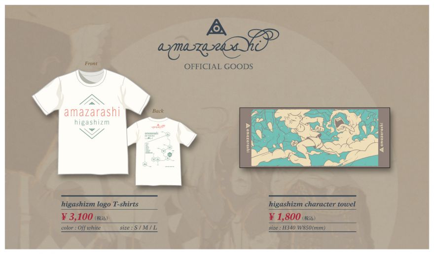 Two dates left before the end of the live tour 2014 「夕日信仰ヒガシズム」 (yuuhi shinkou HIGASHIZUMU), two new goods are added to the list : one t-shirt and a towel with 「もう一度」 (mou ichido)’s design.