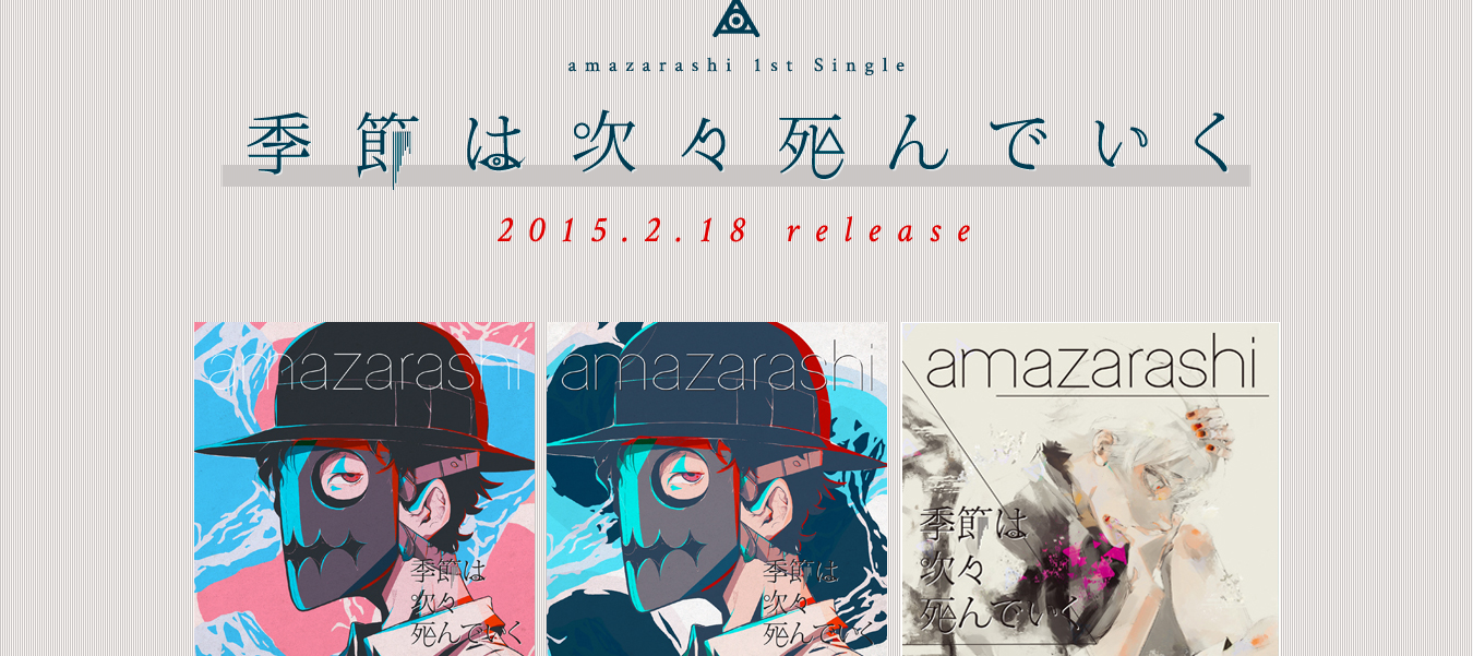 Voici à quoi ressemblera la jaquette du single 「季節は次々死んでいく」 (kisetsu wa tsugitsugi shinde iku) selon les différentes éditions. Les tracklists de chacune d’entre elles sont également en ligne sur la page spéciale http://www.amazarashi.com/kisetsu/