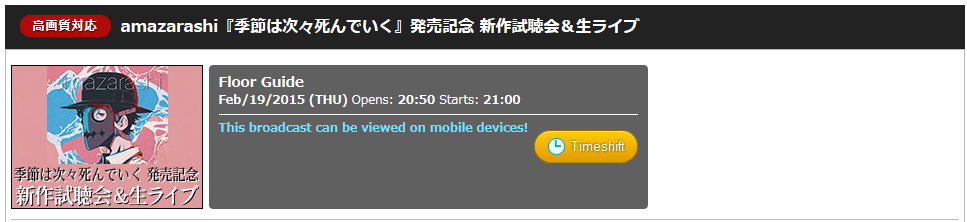 amazarashi prévoit une nouvelle séance live sur NICONICO. En lien avec la sortie de 「季節は次々死んでいく」 (kisetsu wa tsugitsugi shinde iku) aujourd’hui, Hiromu Akita jouera en acoustique demain dès 13h.