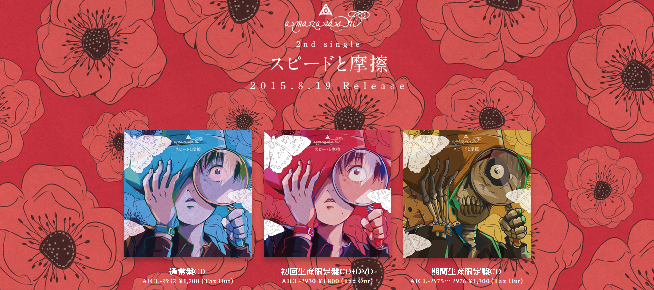 Dès à présent, il est possible d’écouter le titre 「スピードと摩擦」 (Speed to masatsu) dans son intégralité sur la page spéciale http://www.amazarashi.com/speedtomasatsu/ .