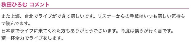 Hiromu Akita a délivré un message pour les fans, auprès du média natalie.mu. En voici une traduction :